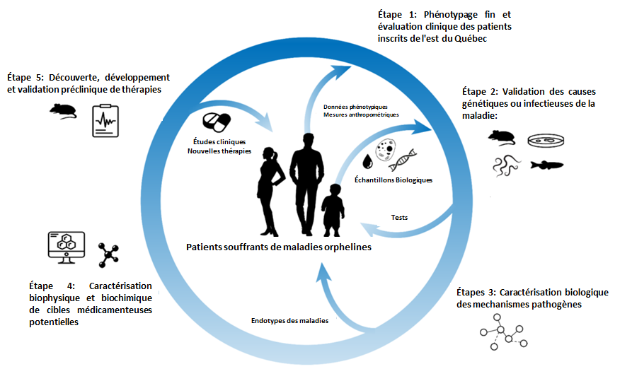 Une maladie orpheline est une pathologie qui ne bénéficie pas de thérapies(s) efficace(s), principalement par manque de connaissances. Ces maladies sont généralement rares, chacune affectant moins d’une personne sur deux-mille. Le faible nombre de cas vus en clinique complique également le diagnostic. Ces maladies rares/orphelines sont au nombre de plus de 7 000 au monde, dont 80 % sont d’origine génétique. D’autres causes inclues des infections ou des intoxications. La plupart de ces maladies sont mortelles et environ 75% touchent les enfants. Selon le Regroupement Québécois des Maladies Orphelines (RQMO), près d’une personne sur vingt serait atteinte ou porteuse d’une maladie rare au Québec, soit environ 500 000 québécois-es. Alors que l’identification des gènes en cause dans les maladies rares bénéficie grandement du projet Génome humain, beaucoup de recherche est encore nécessaire pour comprendre les mécanismes pathogéniques et développer des thérapies.