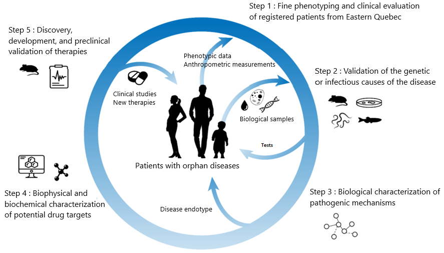 An orphan disease is a pathology that does not benefit from effective therapies, mainly due to lack of knowledge. These diseases are generally rare, each affecting less than 1 in 2,000 people. The small number of cases seen in the clinic also complicates the diagnosis. These rare / orphan diseases are more than 7,000 worldwide, 80% of which are genetic. Other causes include infections or poisoning. Most of these diseases are fatal and around 75% affect children. According to the Regroupement Québécois des Maladies Orphelines (RQMO), nearly one in 20 people is suffering from or carrying a rare disease in Quebec, approximately 500,000 Quebecers. While the identification of the genes involved in rare diseases benefits greatly from the Human Genome project, much research is still needed to understand pathogenic mechanisms and develop therapies.